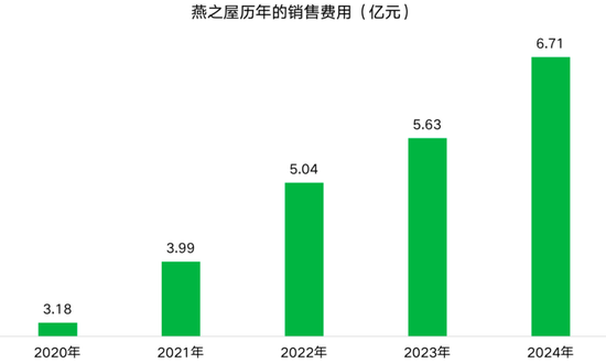 这一系列操作反映到财报上,燕之屋的销售及经销开支逐年增长。2021年至2023年燕之屋的销售及经销开支分别为3.99亿元、5.04亿元和5.63亿元,2024年更是达到6.71亿元,占营收的比重高达32.7%。这也是燕之屋“增收不增利”的主要原因。