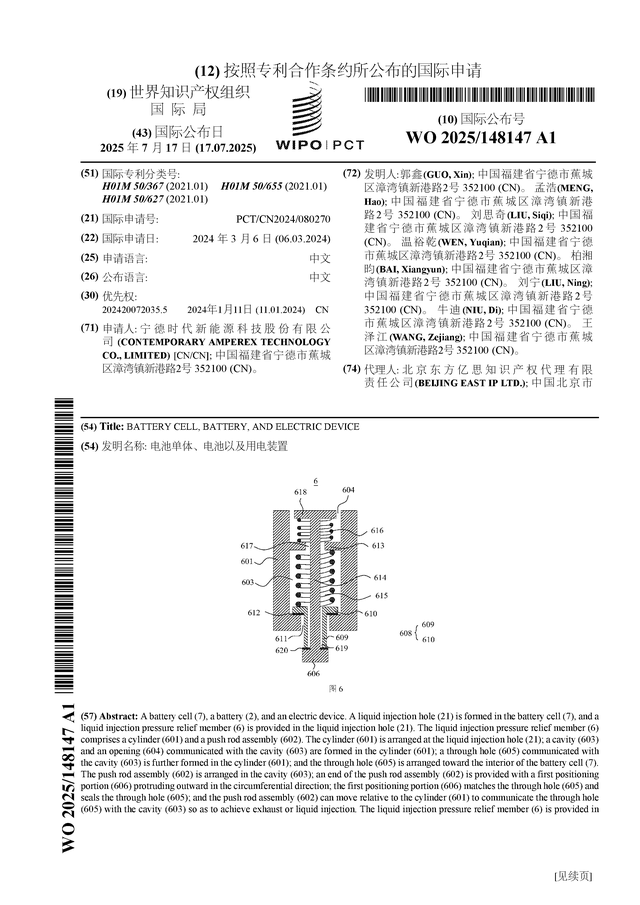证券之星消息,根据企查查数据显示宁德时代(300750)公布了一项国际专利申请,专利名为“电池单体、电池以及用电装置”,专利申请号为PCT/CN2024/080270,国际公布日为2025年7月17日。
