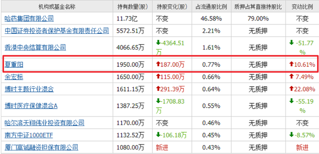 一季度,夏重阳再度加仓187万股,合计持有1950万股,位列第四大流通股东。